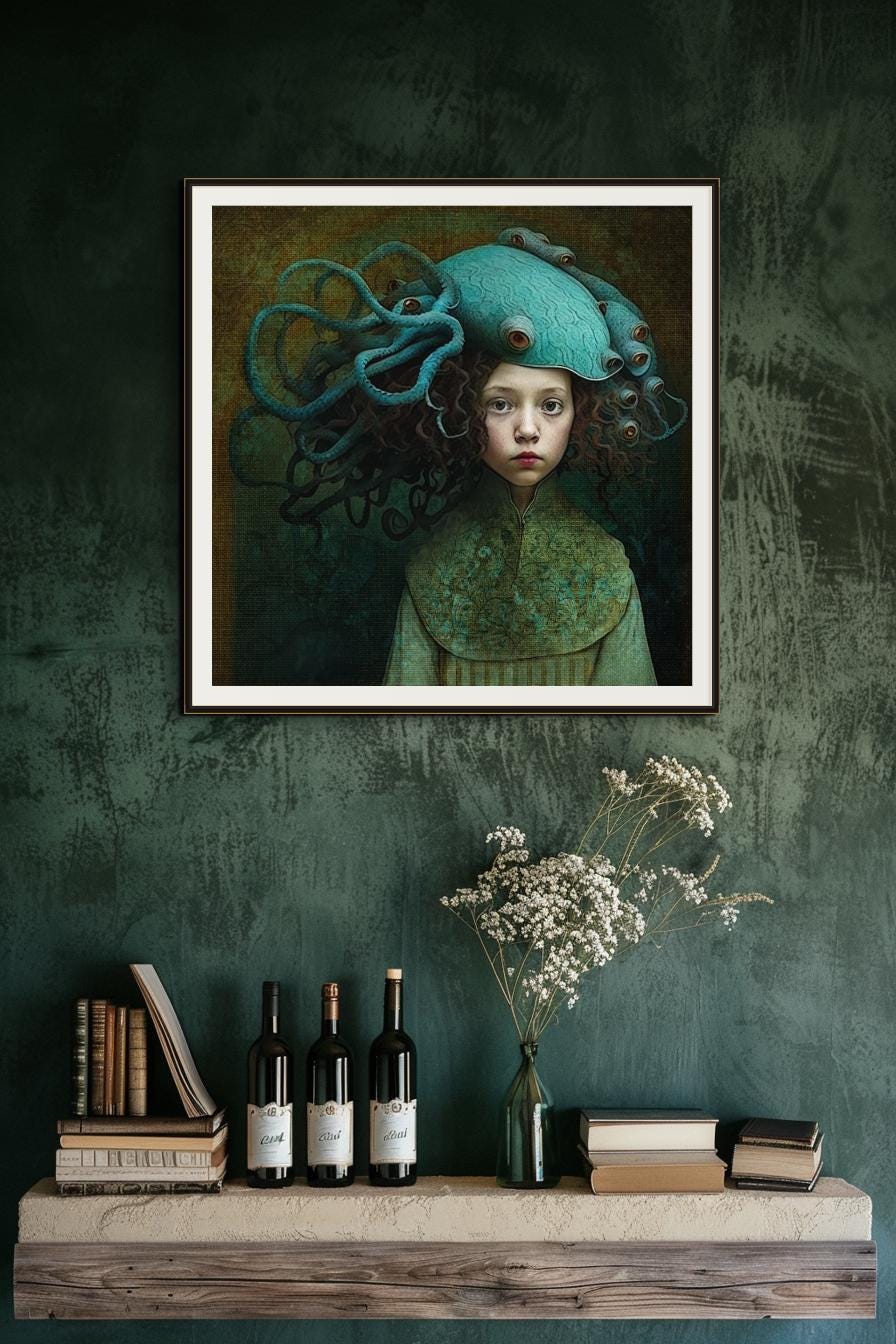 Welcome to my shop of unusual and eclectic wall art decor for the discerning lover of new art. All pieces are my own, limited editions, signed and numbered. My digital art prints begin with a 3D or AI image, heavily edited from that point with overlays, textures, overpainting, adjustments, and added elements. There is often a strong bent toward the surreal, but along the way my work leans heavily on pre-Raphaelite, Renaissance, Flemish, and Medieval schools of art, as well as pop surrealism and other newer schools. The finished product has a modern quality while staying true to the older schools.
