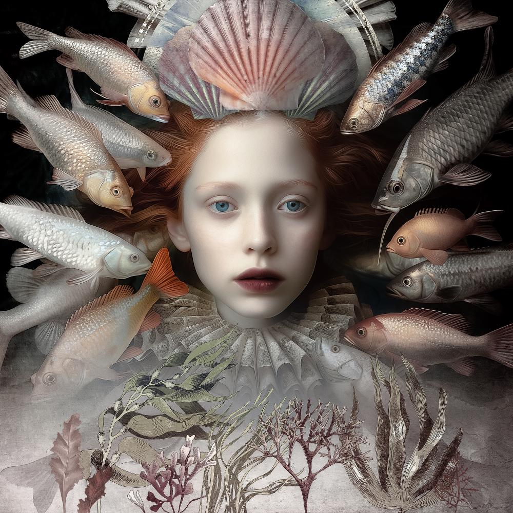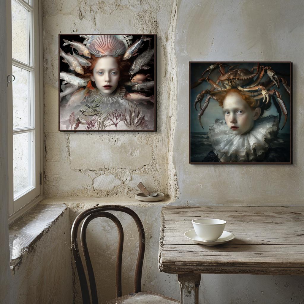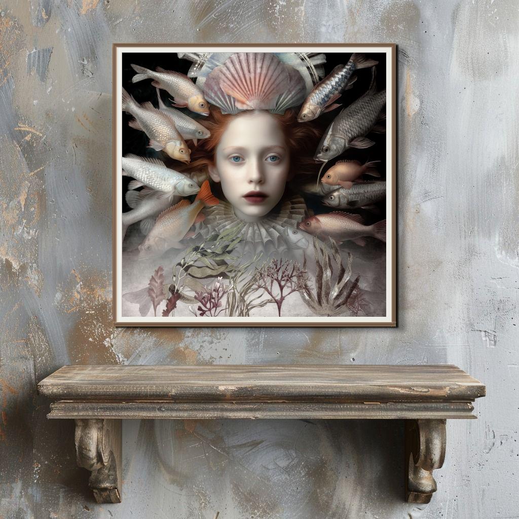 My digital art prints begin with a 3D or AI image, heavily edited from that point with overlays, textures, overpainting, adjustments, and added elements. There is often a strong bent toward the surreal, but along the way my work leans heavily on pre-Raphaelite, Renaissance, Flemish, and Medieval schools of art, as well as pop surrealism and other newer schools. The finished product has a modern quality while staying true to the older schools.