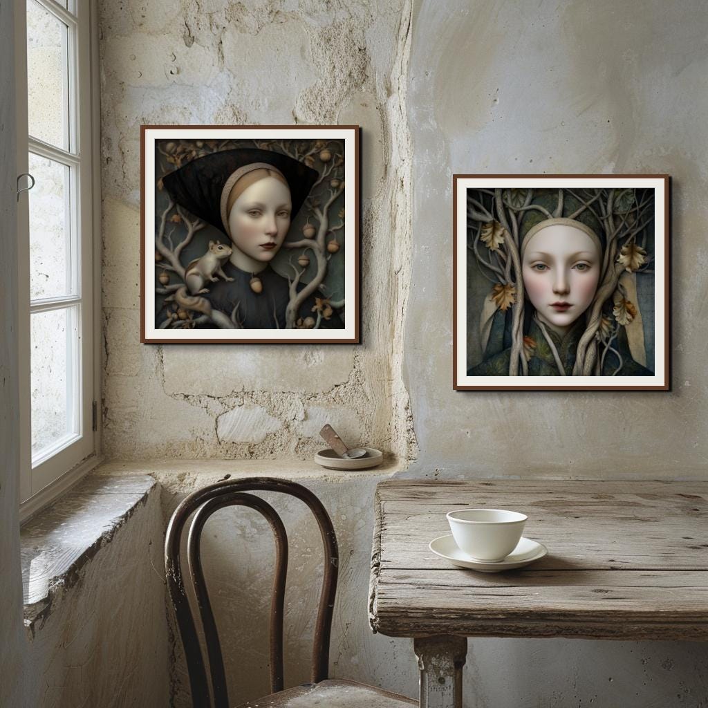 Welcome to my shop of unusual and eclectic wall art decor for the discerning lover of new art. All pieces are my own, limited editions, signed and numbered. My digital art prints begin with a 3D or AI image, heavily edited from that point with collaged overlays, textures, overpainting, adjustments, photographs and added elements. There is often a strong bent toward the surreal, but along the way my work leans heavily on pre-Raphaelite, Renaissance, Flemish, and Medieval schools of art, as well as pop surrealism and other newer schools. The finished product has a modern quality while staying true to the older schools.