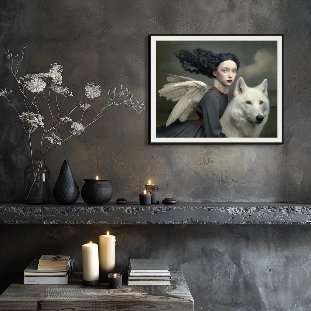 Signed ooak artist proof - Agatha and the Wolf - gothic - winter - archival paper