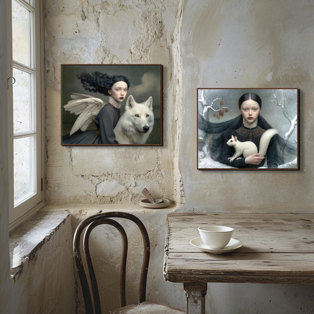 Welcome to my shop of unusual and eclectic wall art decor for the discerning lover of new art. All pieces are my own, limited editions, signed and numbered. My digital art prints begin with a 3D or AI image, heavily edited from that point with collaged overlays, textures, overpainting, adjustments, and added elements. There is often a strong bent toward the surreal, but along the way my work leans heavily on pre-Raphaelite, Renaissance, Flemish, and Medieval schools of art, as well as pop surrealism and other newer schools. The finished product has a modern quality while staying true to the older schools.