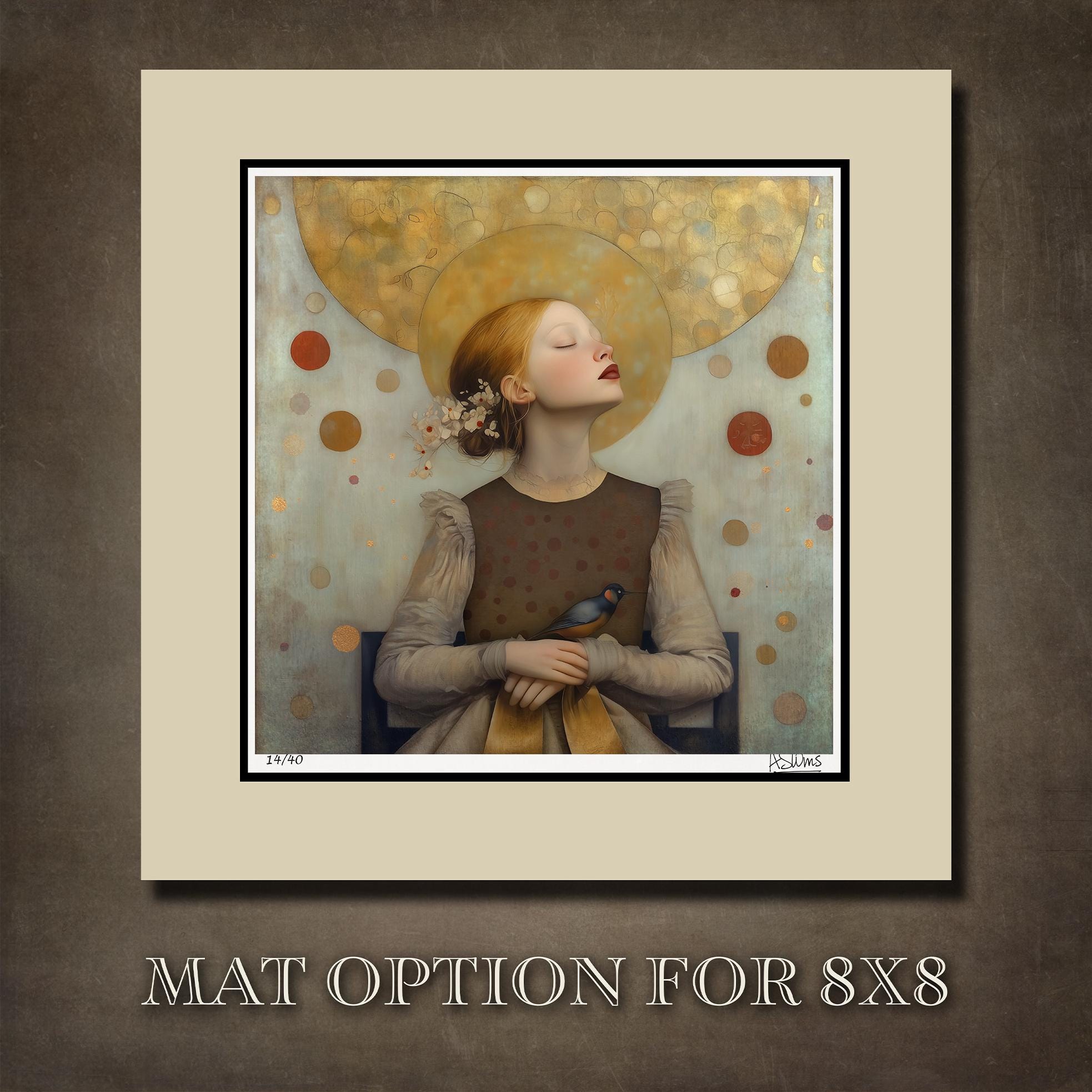 SPEAKING OF MATS -- I have a new option now! Some artist's proof prints will be available already matted. I've included an image for your reference. The mat is a warm cream with a "black core" - meaning you'll see a fine black line drawing the image out. These are acid free mats and the print will be affixed with acid free tape. An acid free backing board will be included. This mat set will be 12 x 12 inches and ready to drop into any 12 x 12 frame you choose. Can it get any easier?