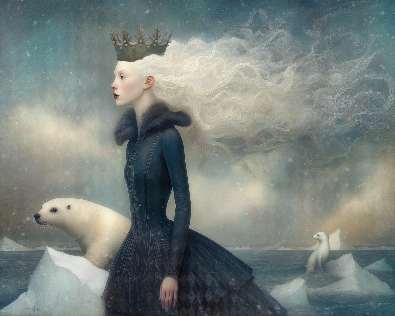 Signed numbered giclee print - The Polar Queen - snowy seasonal windy