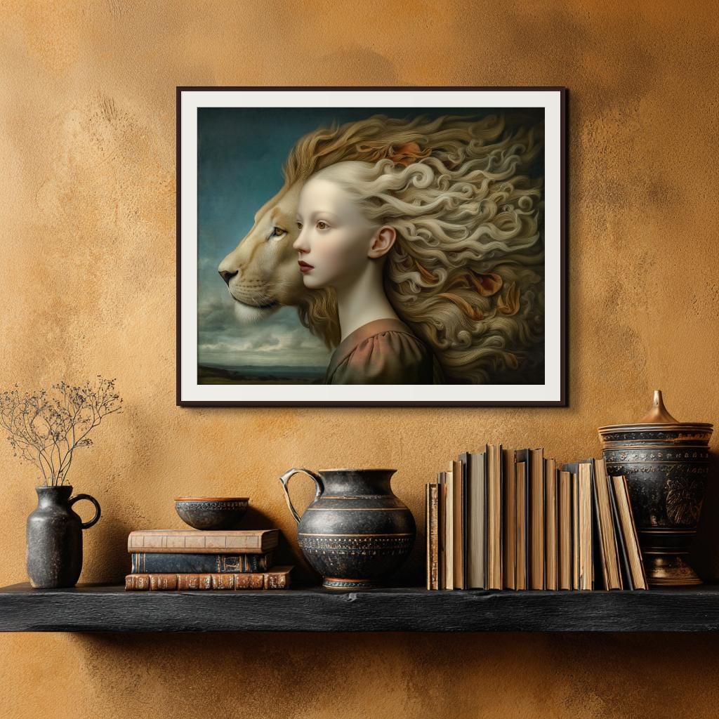 Signed ooak artist's proof print - The Mane - lion wildlife portrait surreal art