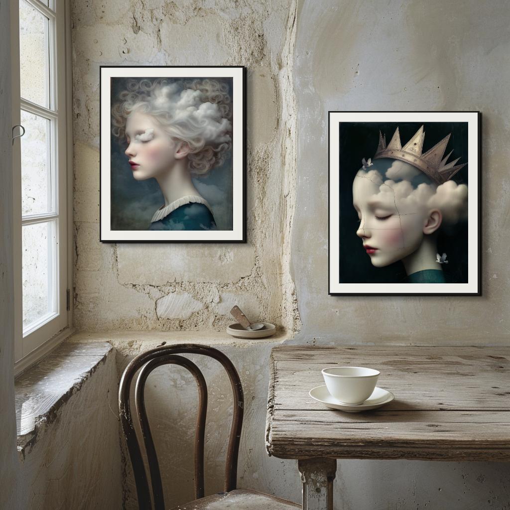 Welcome to my shop of unusual and eclectic wall art decor for the discerning lover of new art. All pieces are my own, limited editions of 40 prints, signed and numbered. My digital art prints begin with a 3D or AI image, heavily edited from that point with collaging, overlays, textures, overpainting, adjustments, added elements, and my own photographs. There is often a strong bent toward the surreal, but along the way my work leans heavily on pre-Raphaelite, Renaissance, Flemish, and Medieval schools of art, as well as pop surrealism and other newer schools. The finished product has a modern quality while staying true to the older schools.