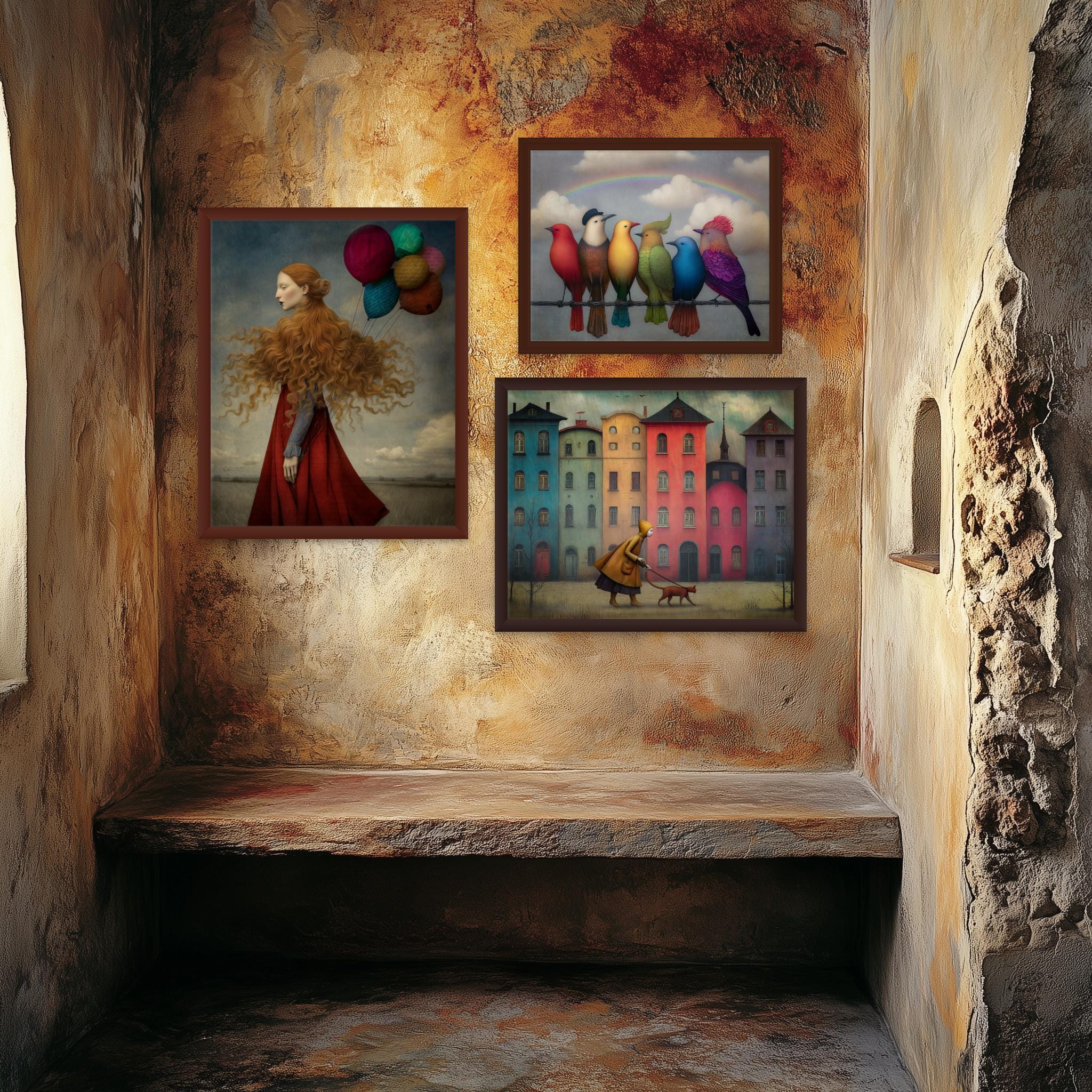 Welcome to my shop of unusual and eclectic wall art decor for the discerning lover of new art. All pieces are my own, limited editions of 40 prints, signed and numbered. My digital art prints begin with a 3D or AI image, heavily edited from that point with collaging, overlays, textures, overpainting, adjustments, added elements, and my own photographs. There is often a strong bent toward the surreal, but along the way my work leans heavily on pre-Raphaelite, Renaissance, Flemish, and Medieval schools of art, as well as pop surrealism and other newer schools. The finished product has a modern quality while staying true to the older schools.